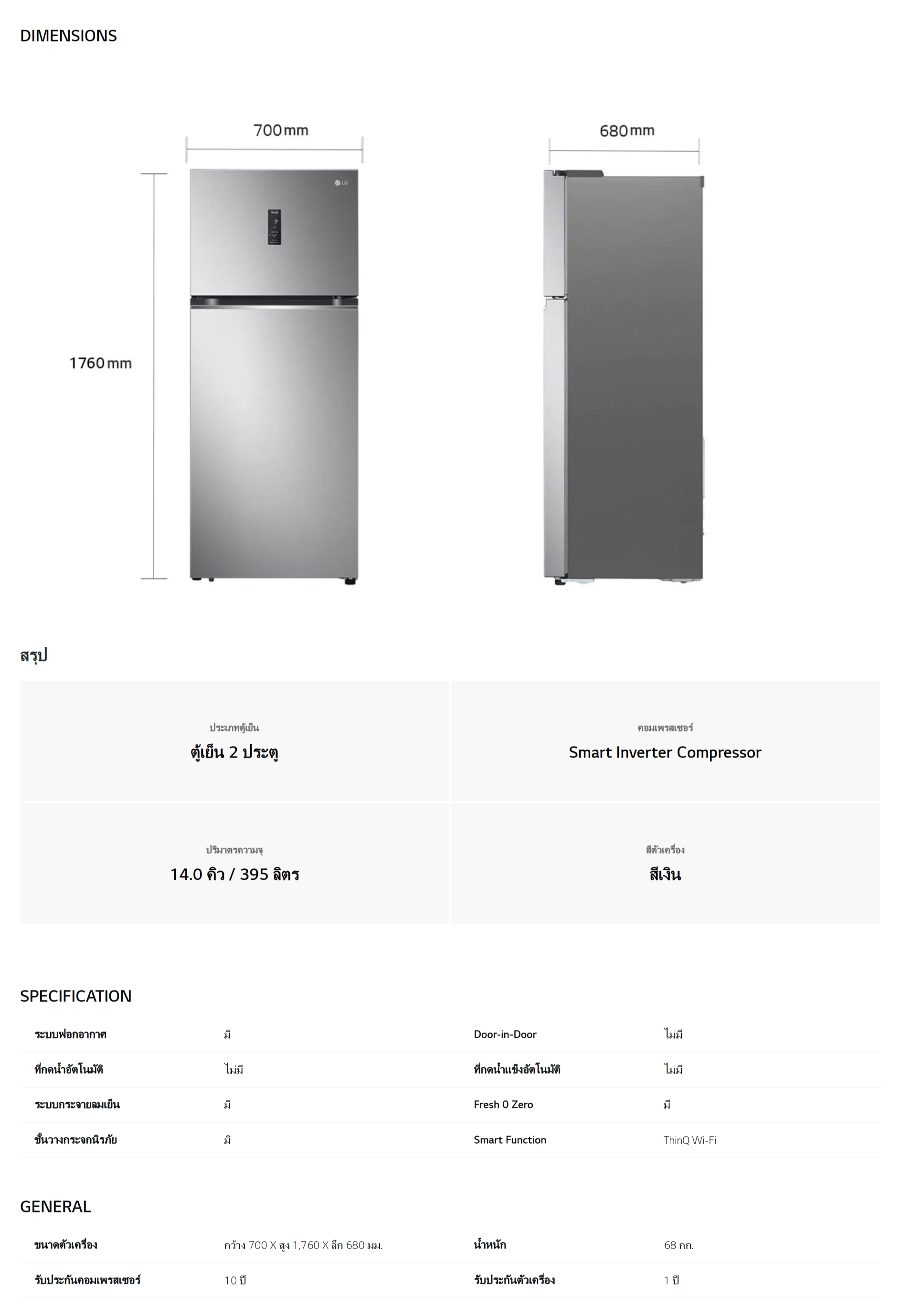 รายละเอียดสินค้า ตู้เย็น 2 ประตู LG ขนาด 14 คิว รุ่น GN-B392PLBK ประหยัดไฟการันตีด้วยฉลากเบอร์ 5 สามดาว และ Hygiene Fresh ขจัดแบคทีเรียและกลิ่นในตู้เย็น